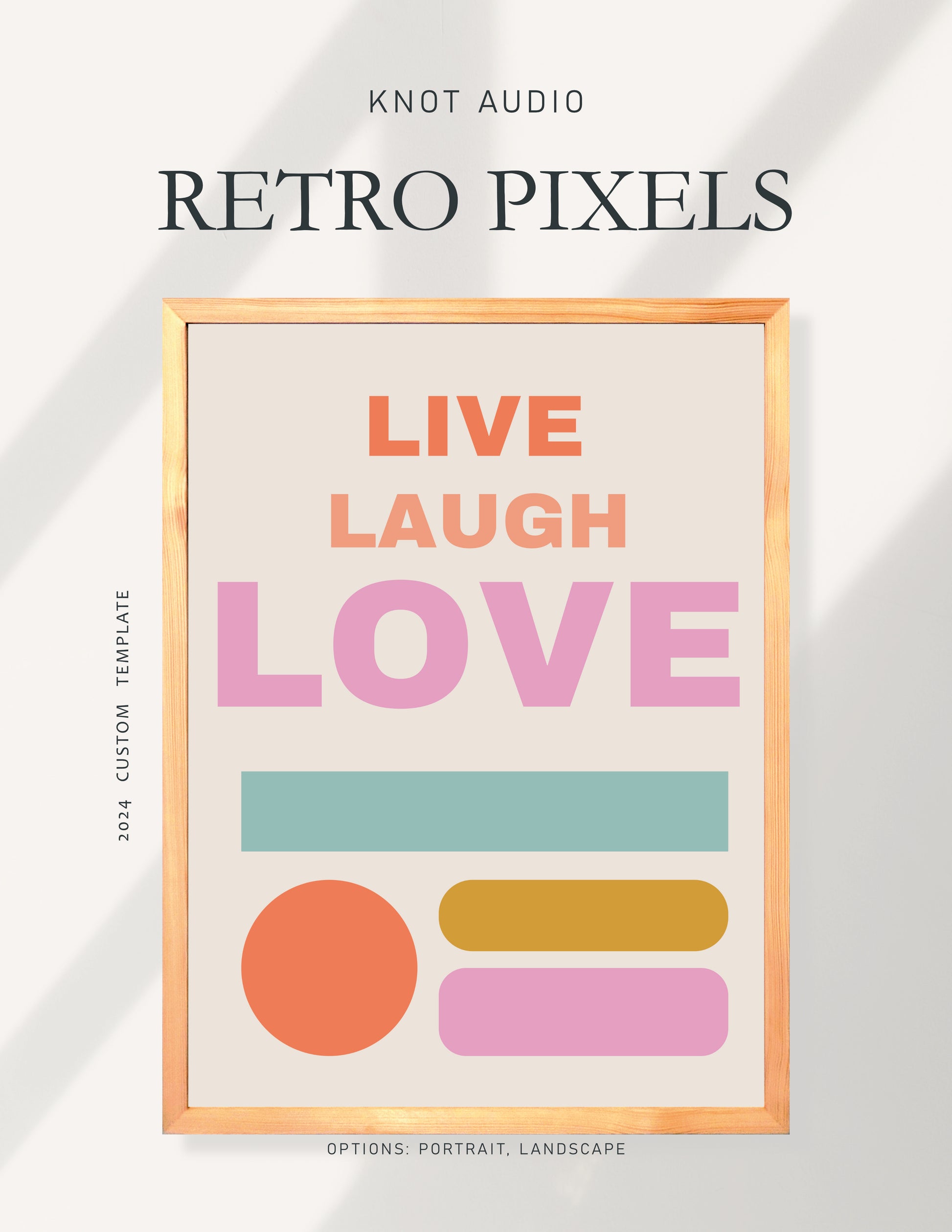 From our custom templates, the text can be customized in our Retro Pixels. All templates are printed on 7.4pt semi-gloss at a size of 18"x24".